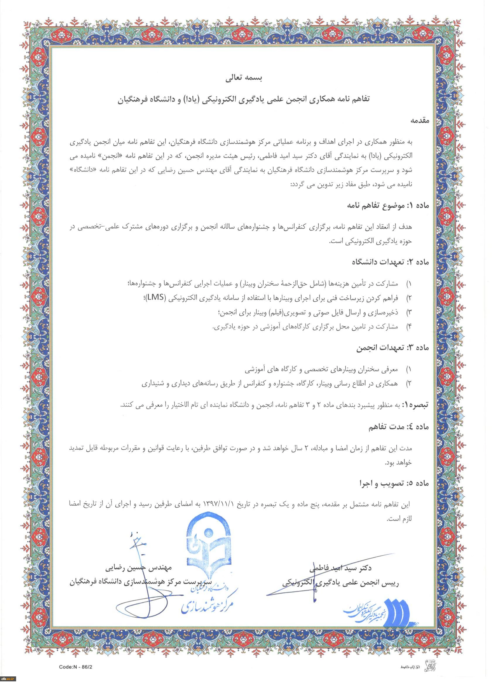 در راستای همکاری های علمی و تخصصی : تفاهم نامه همکاری میان مرکز هوشمندسازی دانشگاه فرهنگیان و انجمن علمی یادگیری الکترونیکی ایران منعقد شد 2