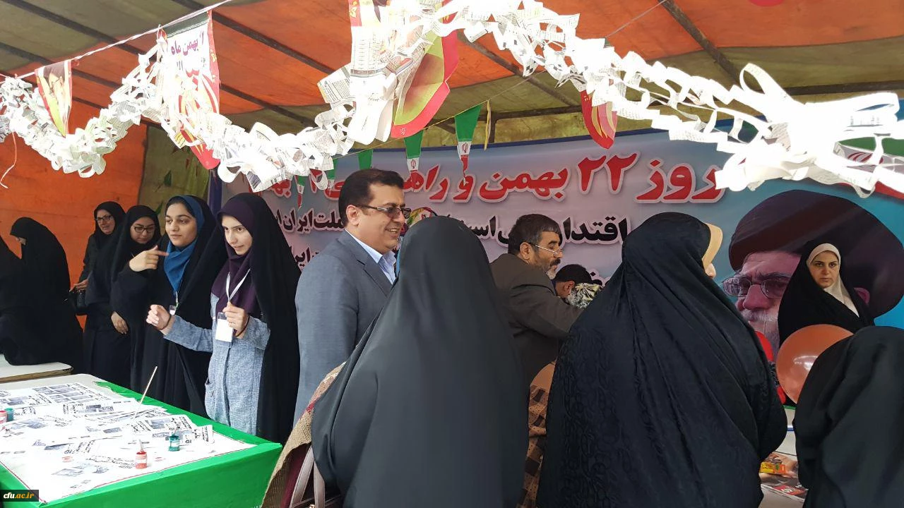 دانشجو معلمان دانشگاه فرهنگیان مازندران در غرفه این دانشگاه در مسیر راهپیمایی ۲۲ بهمن عشق به وطن، پرچم و آرمان ها را تدریس کردند.