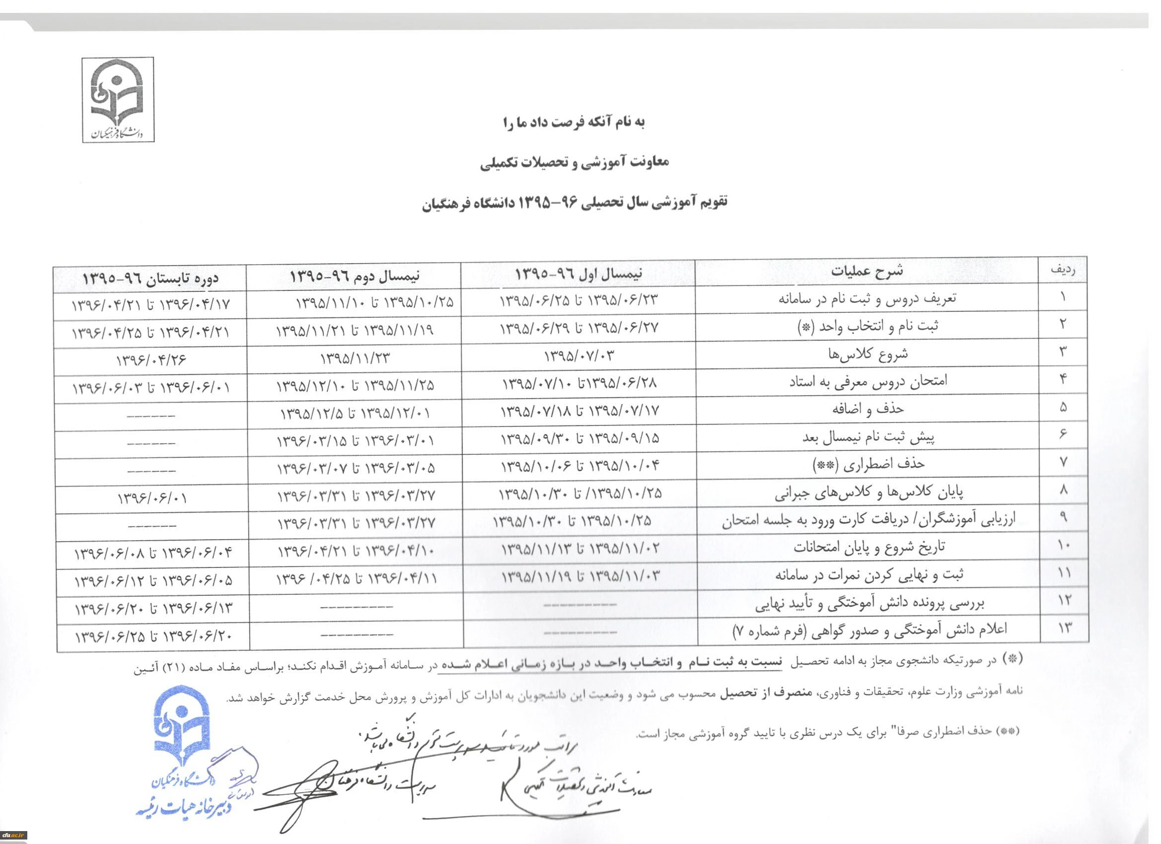 تقویم آموزشی 96-95