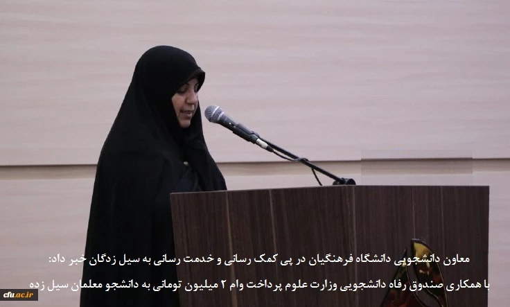 معاون دانشجویی دانشگاه فرهنگیان در پی کمک رسانی و خدمت رسانی به سیل زدگان خبر داد: با همکاری صندوق رفاه دانشجویی وزارت علوم پرداخت وام 2 میلیون تومانی به دانشجو معلمان سیل زده 3