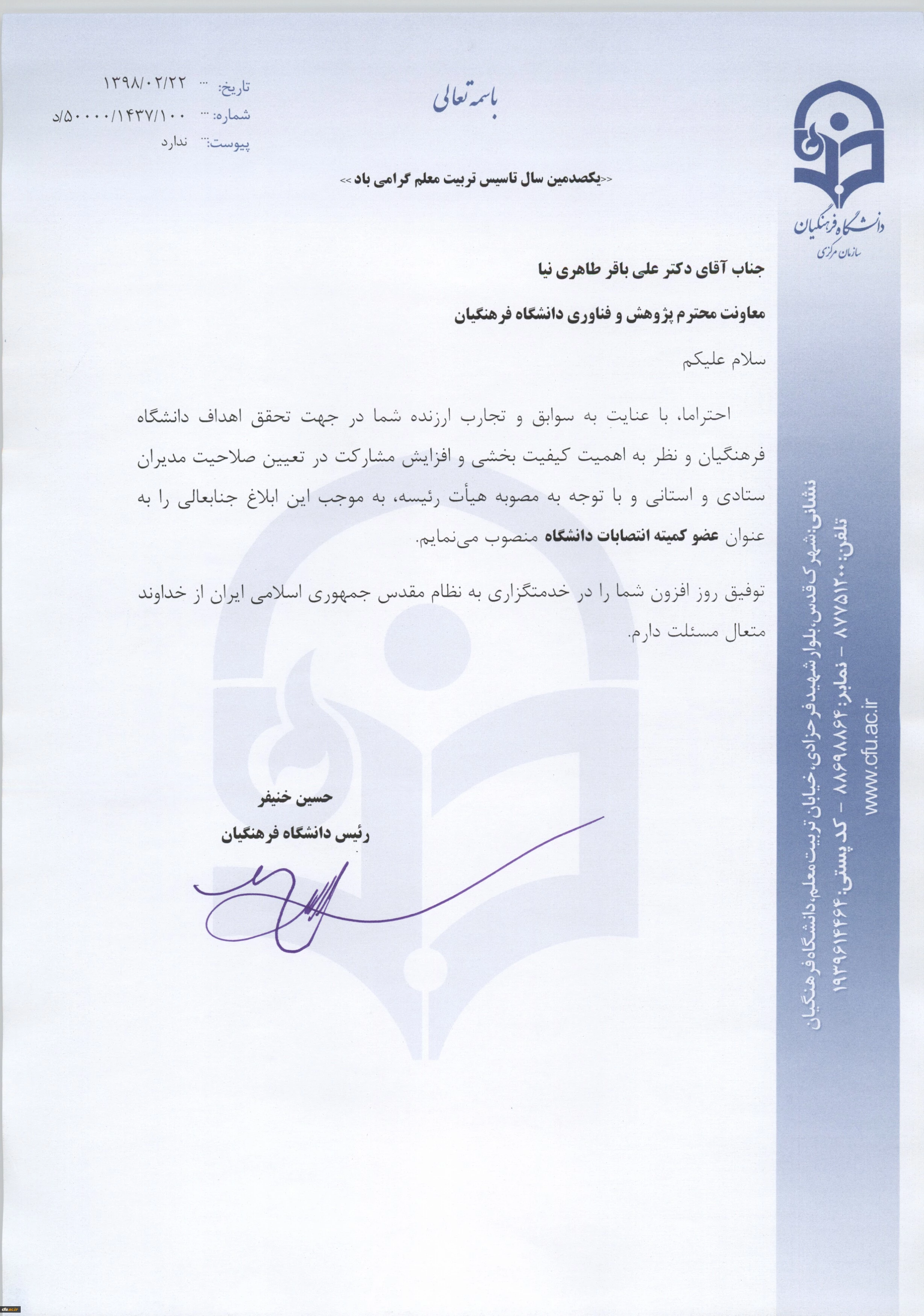 انتصاب اعضاء کمیته انتصابات دانشگاه فرهنگیان 2