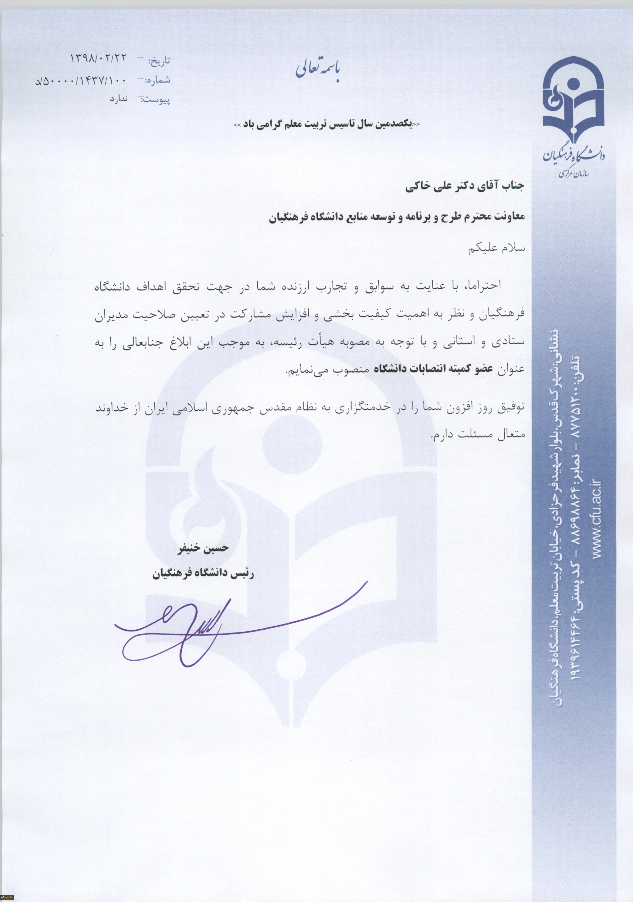 انتصاب اعضاء کمیته انتصابات دانشگاه فرهنگیان 7