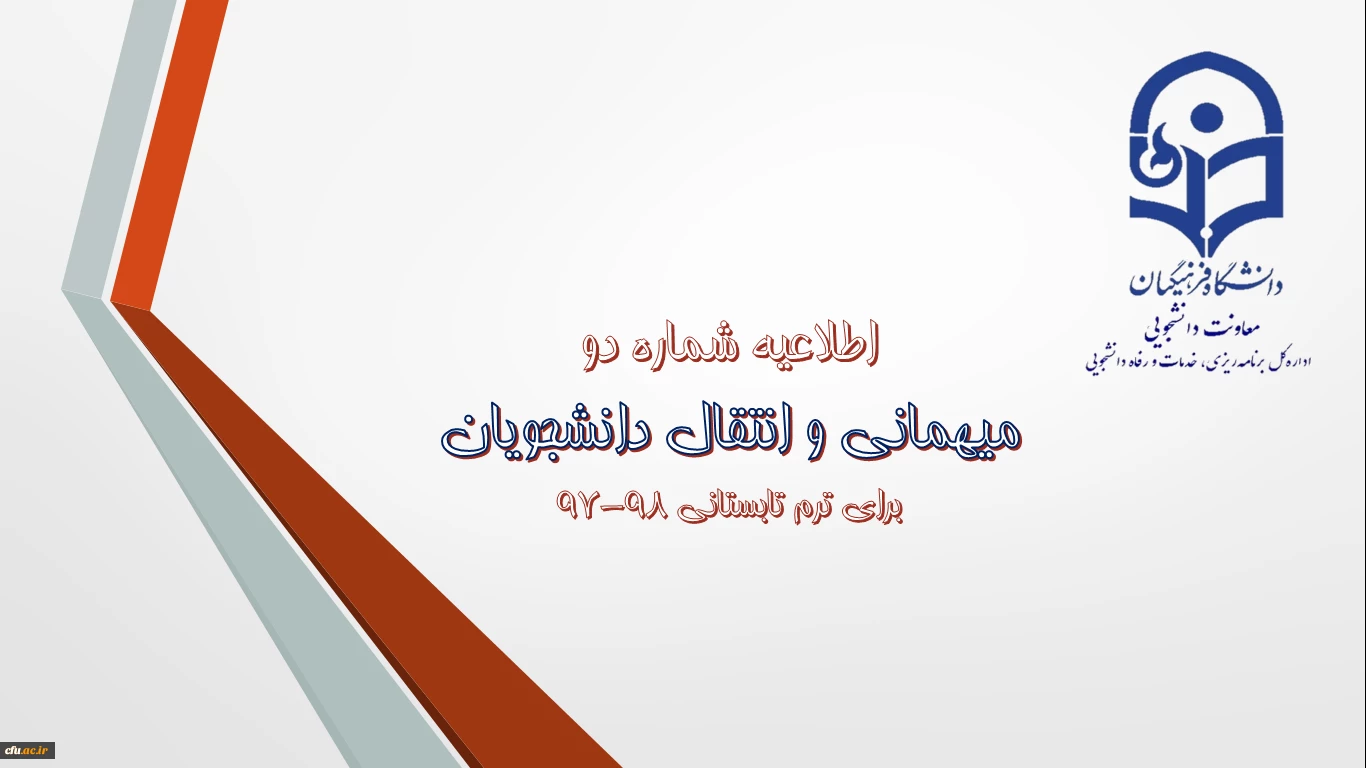 اطلاعیه شماره (2) معاونت دانشجویی: میهمانی و انتقال دانشجویان برای ترم تابستانی 98-97 2