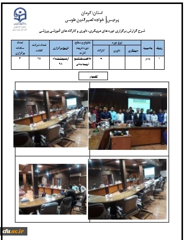 گزارش برگزاری دوره های مربیگری، داوری و کارگاه های آموزشی ورزشی پردیس خواجه نصیرالدین طوسی استان کرمان 3
