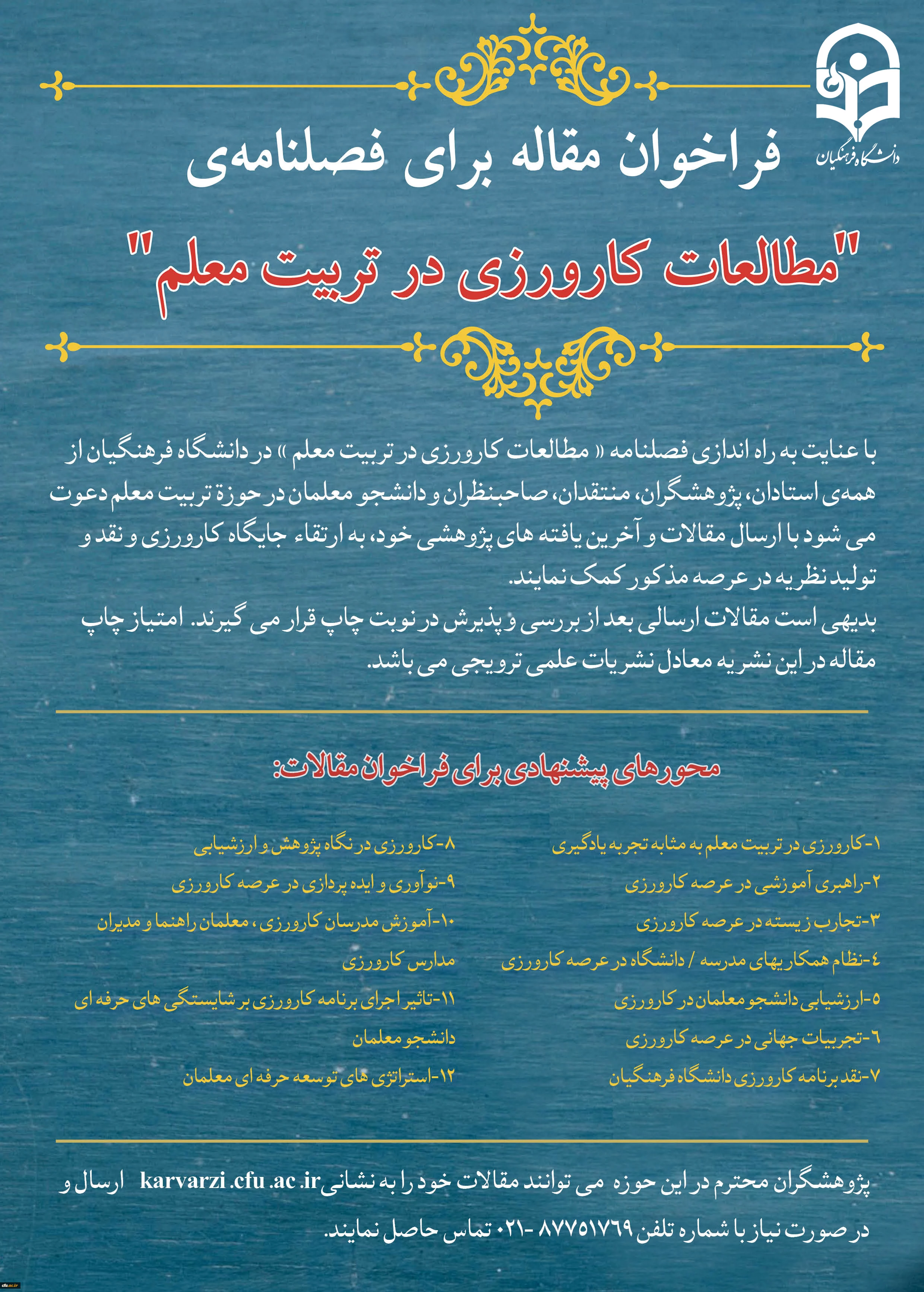 فراخوان مقاله برای فصلنامه «مطالعات کارورزی در تربیت معلم» 2