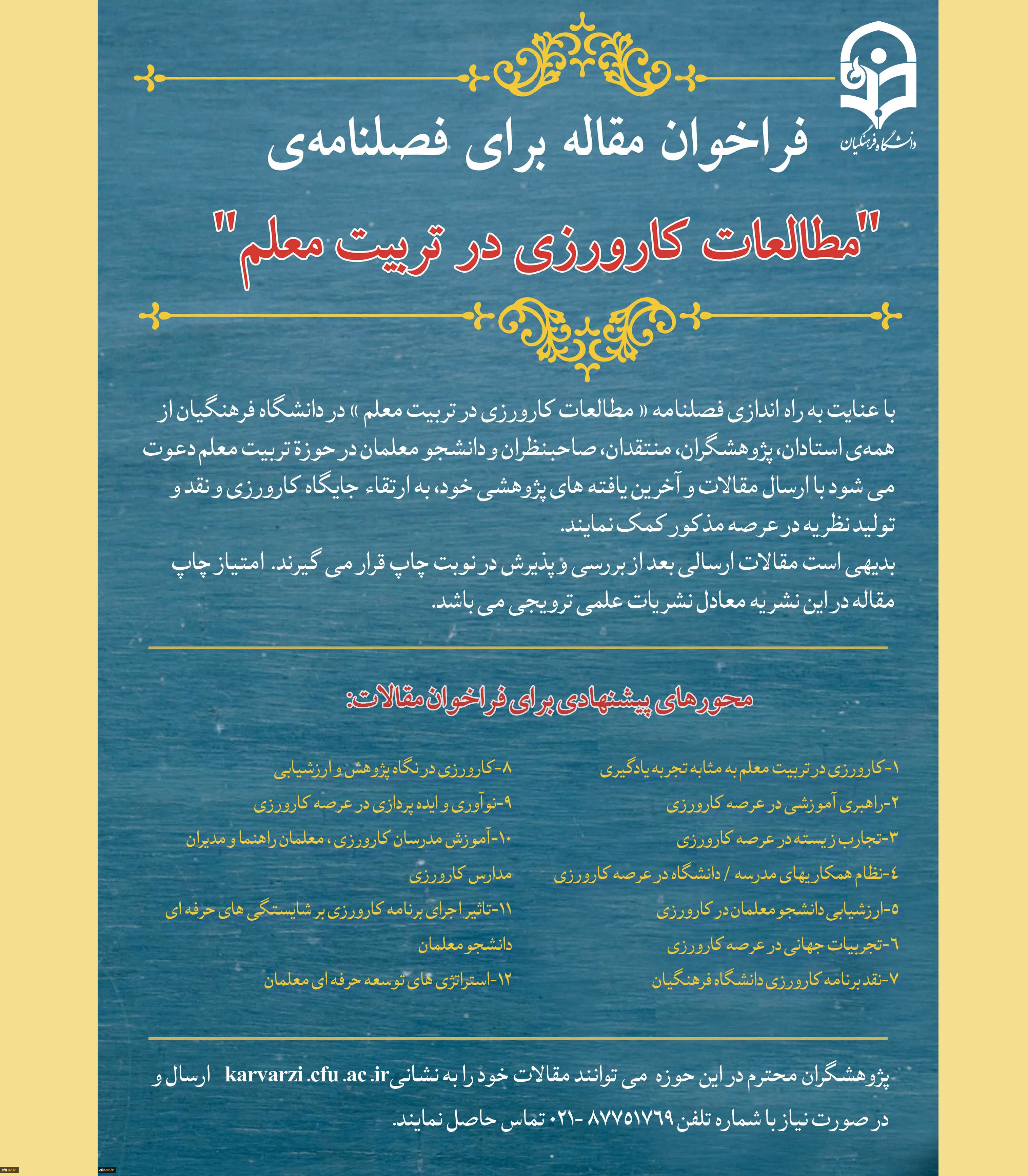 فراخوان مقاله  فصلنامه «مطالعات کارورزی در تربیت معلم» 2