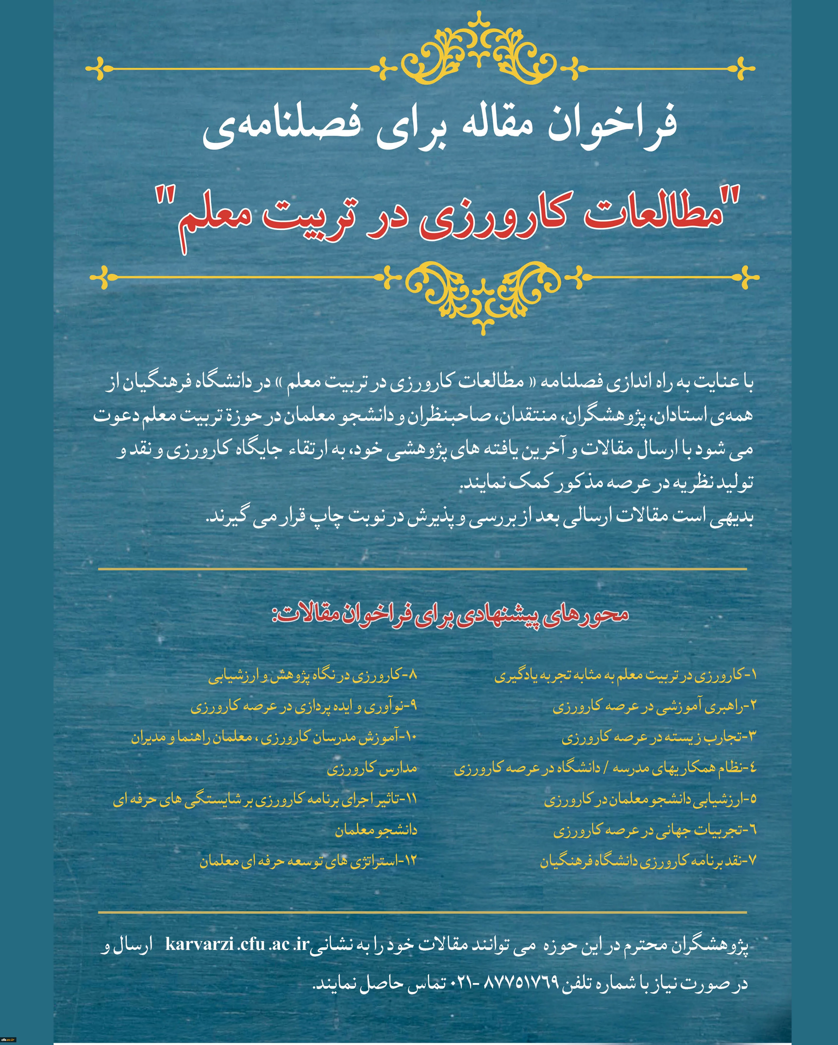 فراخوان مقاله  فصلنامه «مطالعات کارورزی در تربیت معلم» 2
