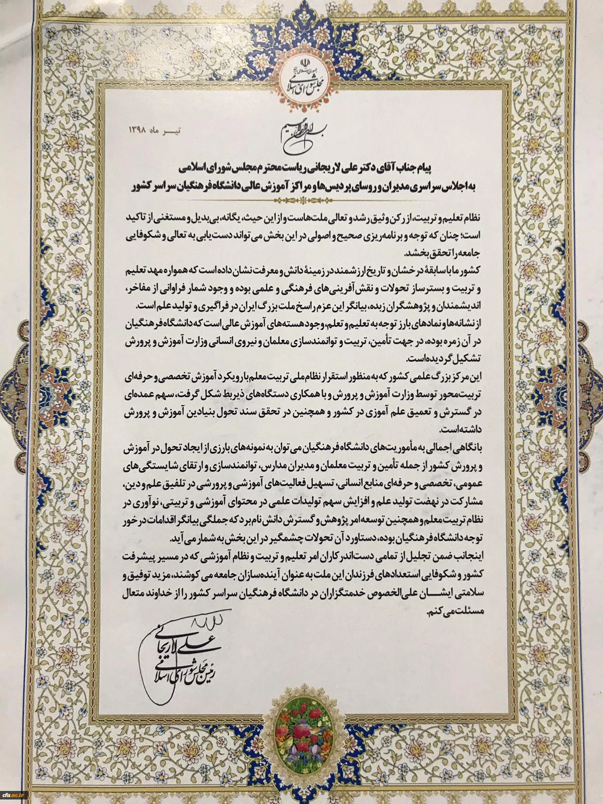 پیام رییس مجلس به اجلاس سراسری مدیران و روسای پردیس ها و مراکز دانشگاه فرهنگیان 3