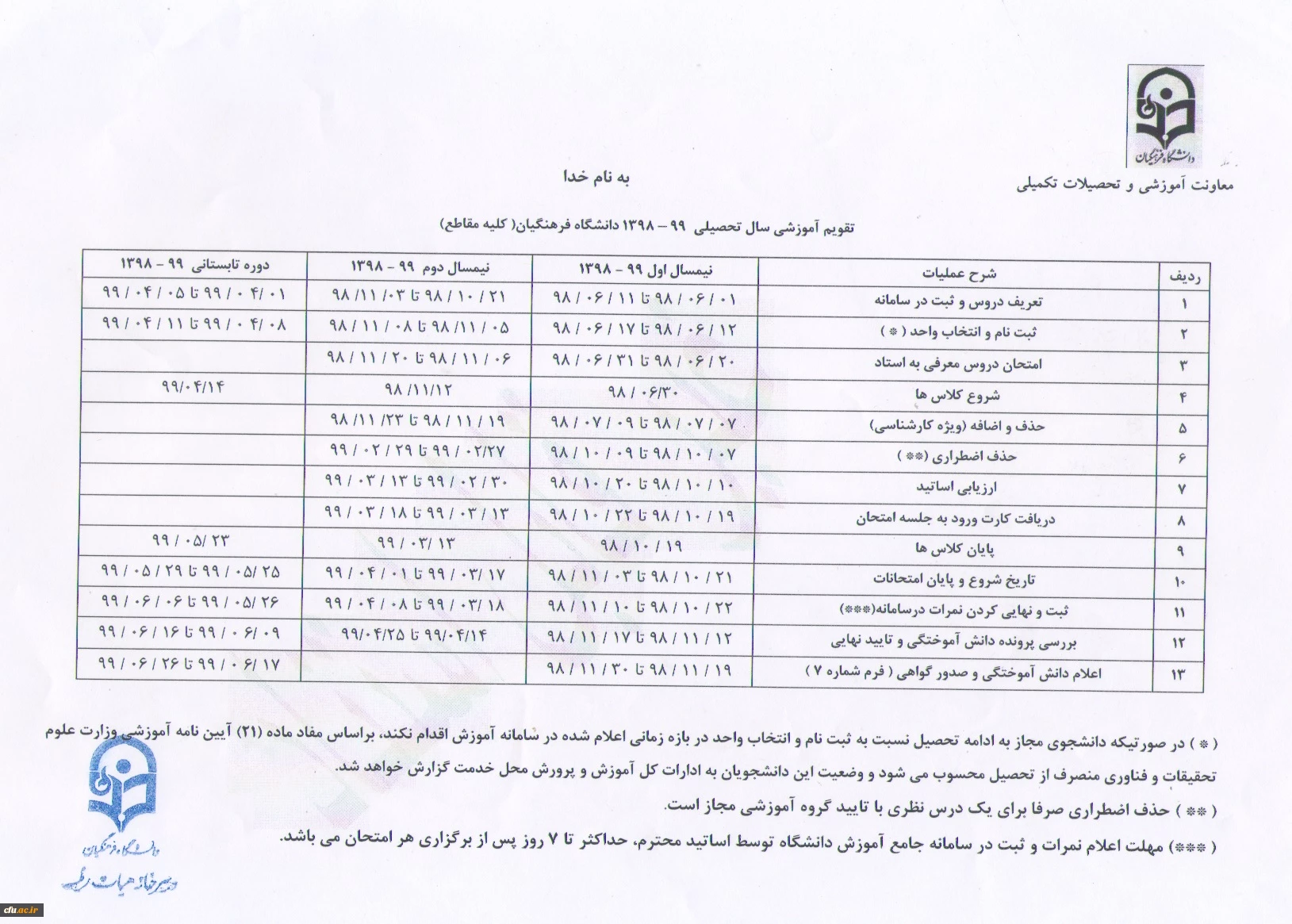 تقویم آموزشی سال تحصیلی ( 99-1398) کلیه مقاطع 2