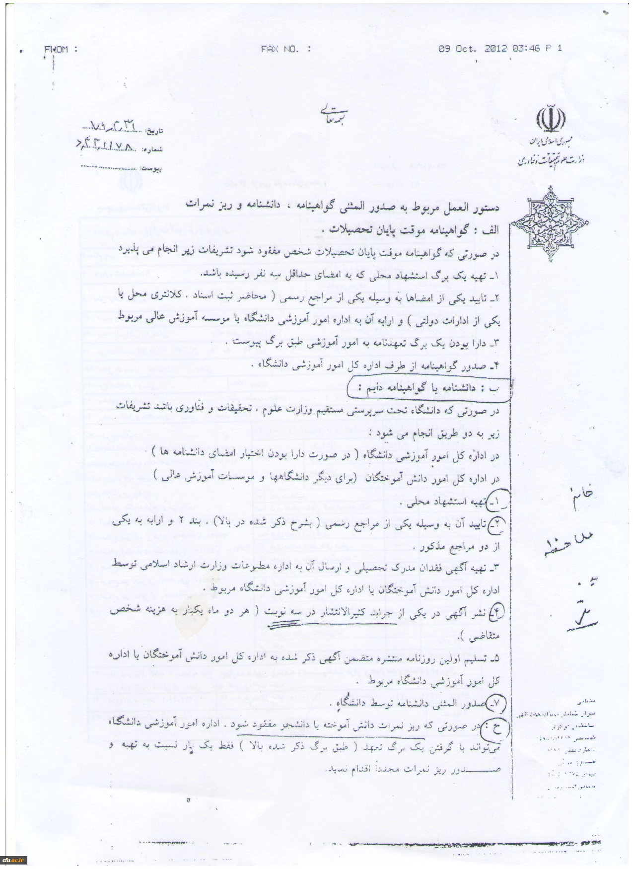 دستورالعمل مربوط به صدور المثنی گواهینامه، دانشنامه و ریز نمرات 2