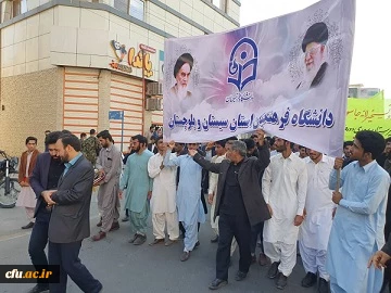 حضور پرشور اساتید،کارکنان ودانشجو معلمان دانشگاه فرهنگیان استان سیستان وبلوچستان در راهپیمایی یوم الله۱۳ آبان