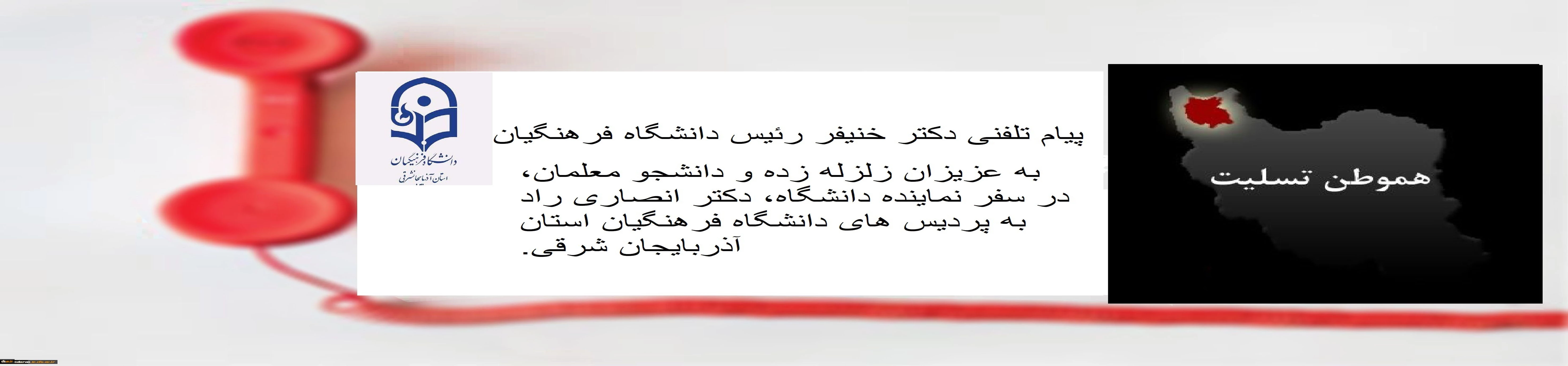 پیام تلفنی دکتر خنیفر رئیس دانشگاه فرهنگیان به عزیزان زلزله زده و دانشجو معلمان، در در اعزام معاون دانشجویی دانشگاه، دکتر انصاری راد به پردیس های دانشگاه فرهنگیان استان آذربایجان شرقی 2
