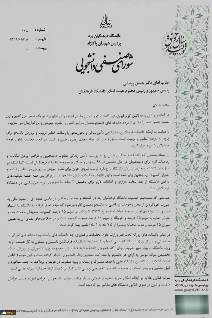 دیدار اعضای شورای صنفی پردیس شهیدان پاک نژاد یزد با رئیس دفتر ریاست جمهوری 3