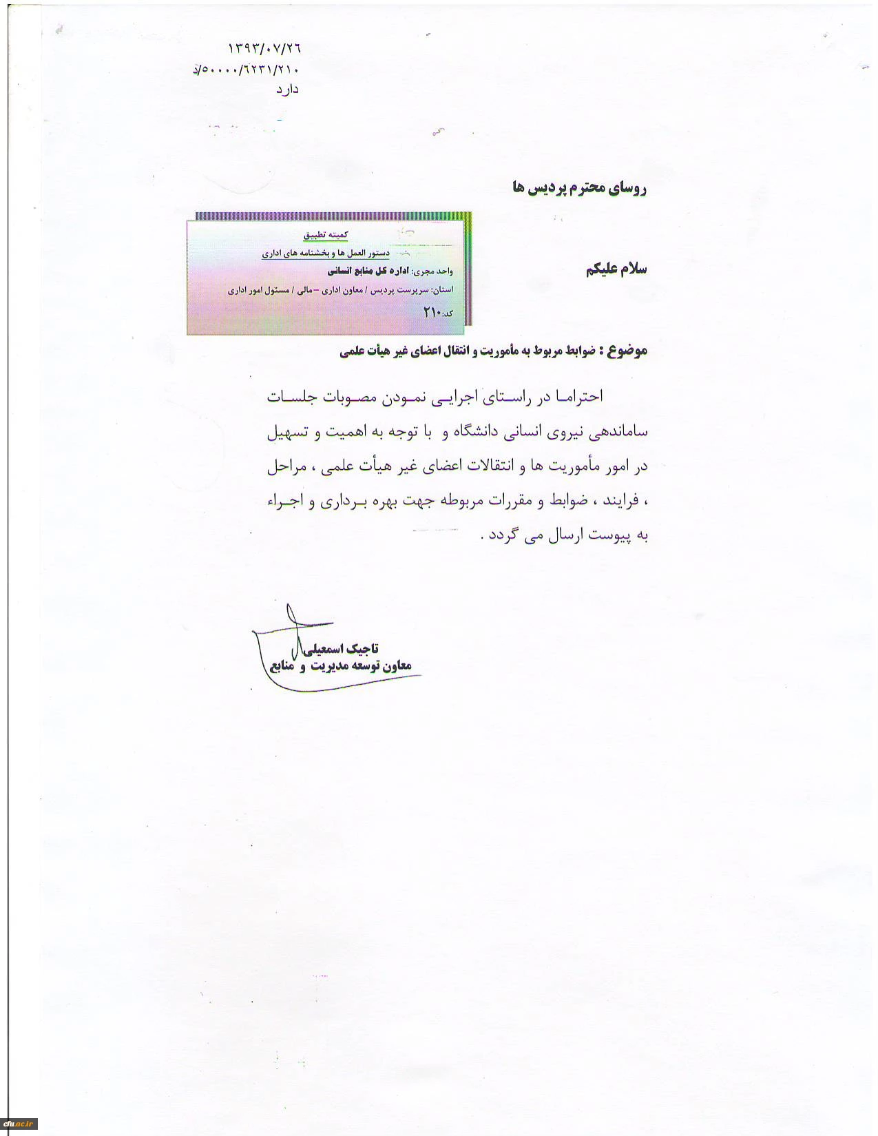 ضوابط مأموریت و انتقال اعضای غیرهیأت علمی