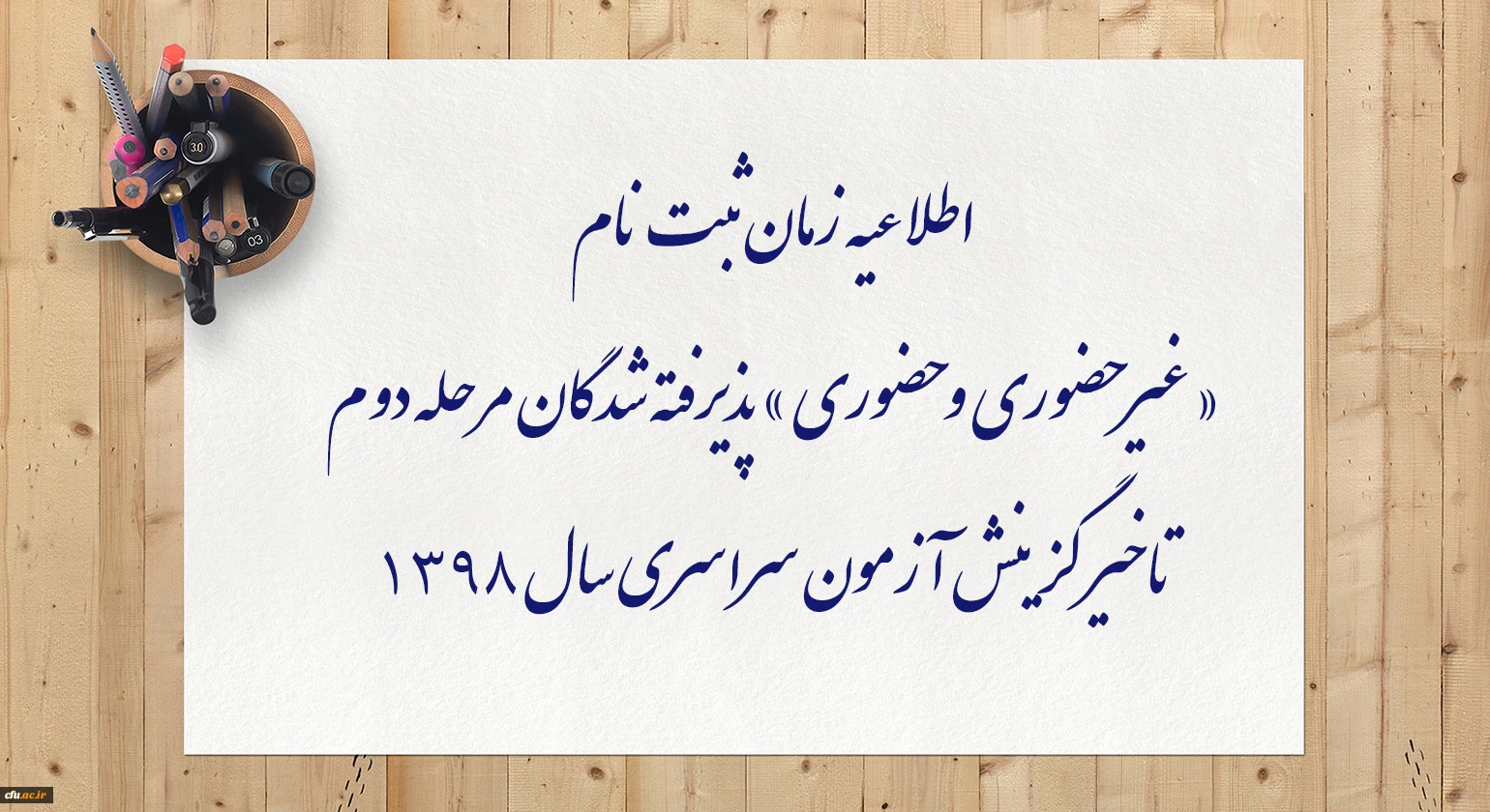 اطلاعیه زمان ثبت نام « غیر حضوری و حضوری » پذیرفته شدگان مرحله دوم تاخیر گزینش آزمون سراسری سال 1398 2