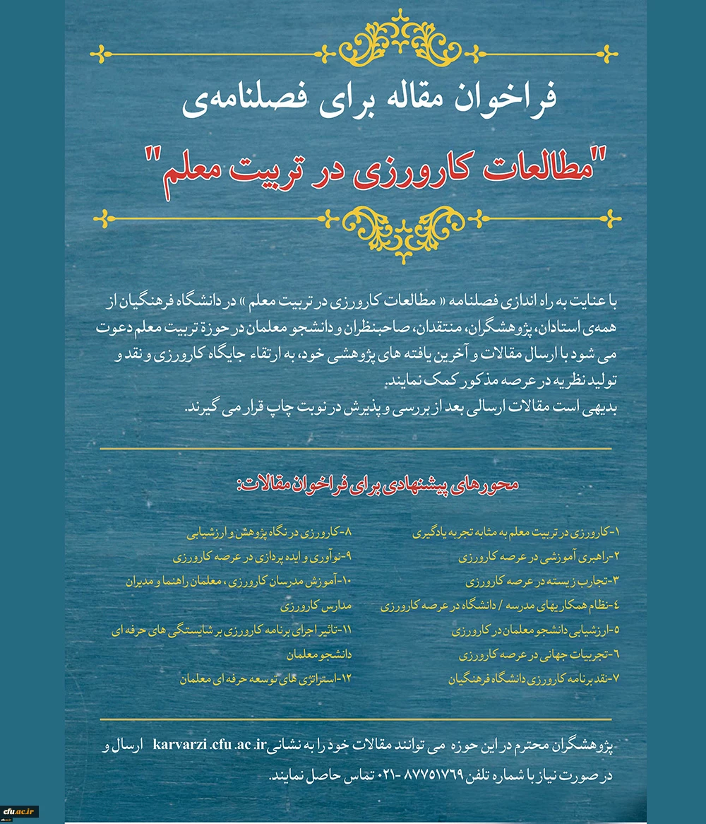 فراخوان مقاله  فصلنامه «مطالعات کارورزی در تربیت معلم» 2