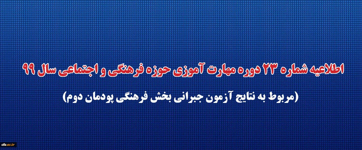 اطلاعیه شماره 23 دوره مهارت آموزی حوزه فرهنگی و اجتماعی سال 99 (مربوط به نتایج آزمون جبرانی بخش فرهنگی پودمان دوم) 2