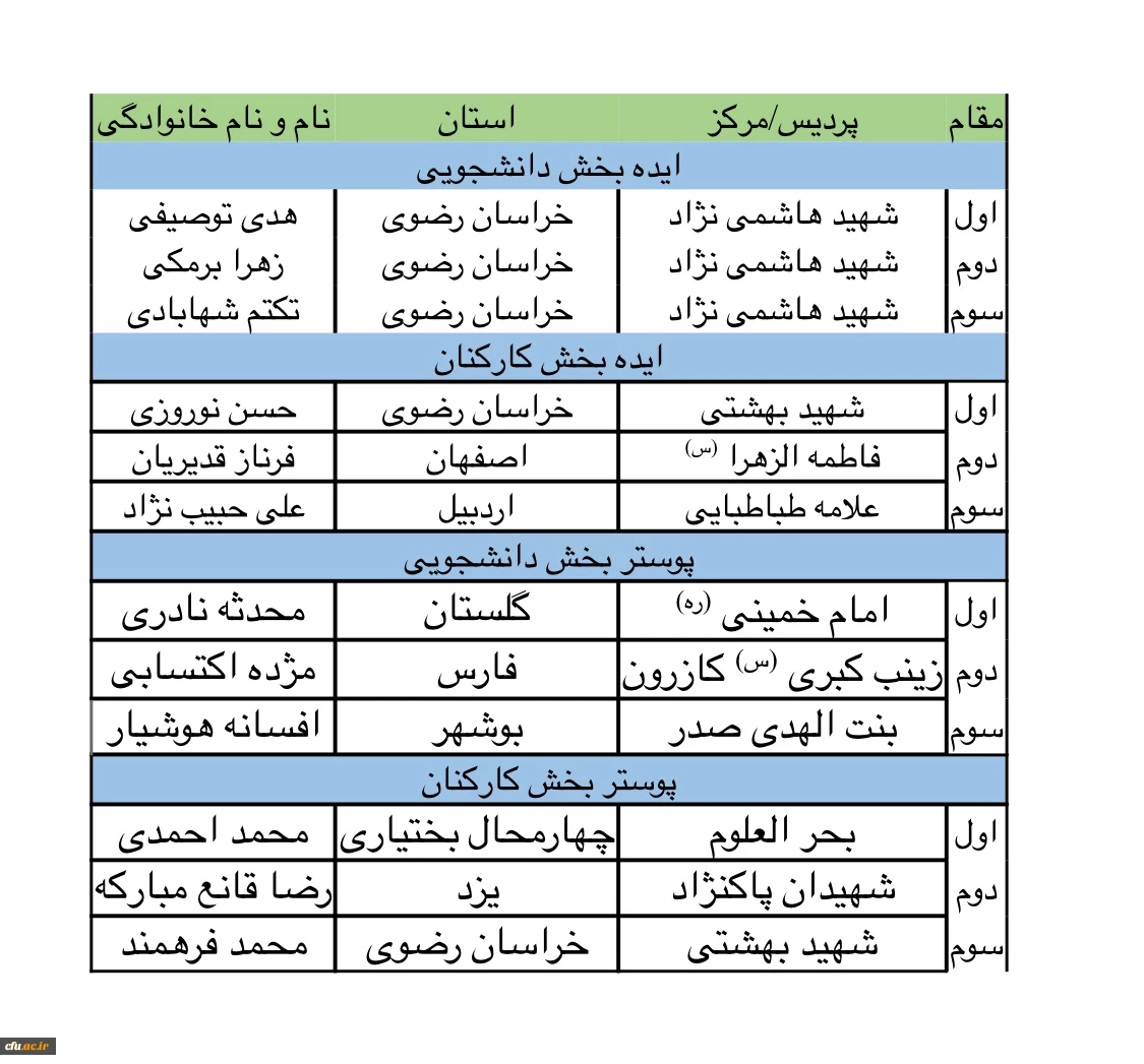 برگزیدگان نفرات برتر "جشنواره ورزش در خانه” 2