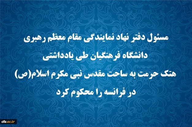 مسئول دفتر نهاد نمایندگی مقام معظم رهبری دانشگاه فرهنگیان طی یادداشتی هتک حرمت به ساحت مقدس نبی مکرم اسلام(ص) در فرانسه را محکوم کرد 2