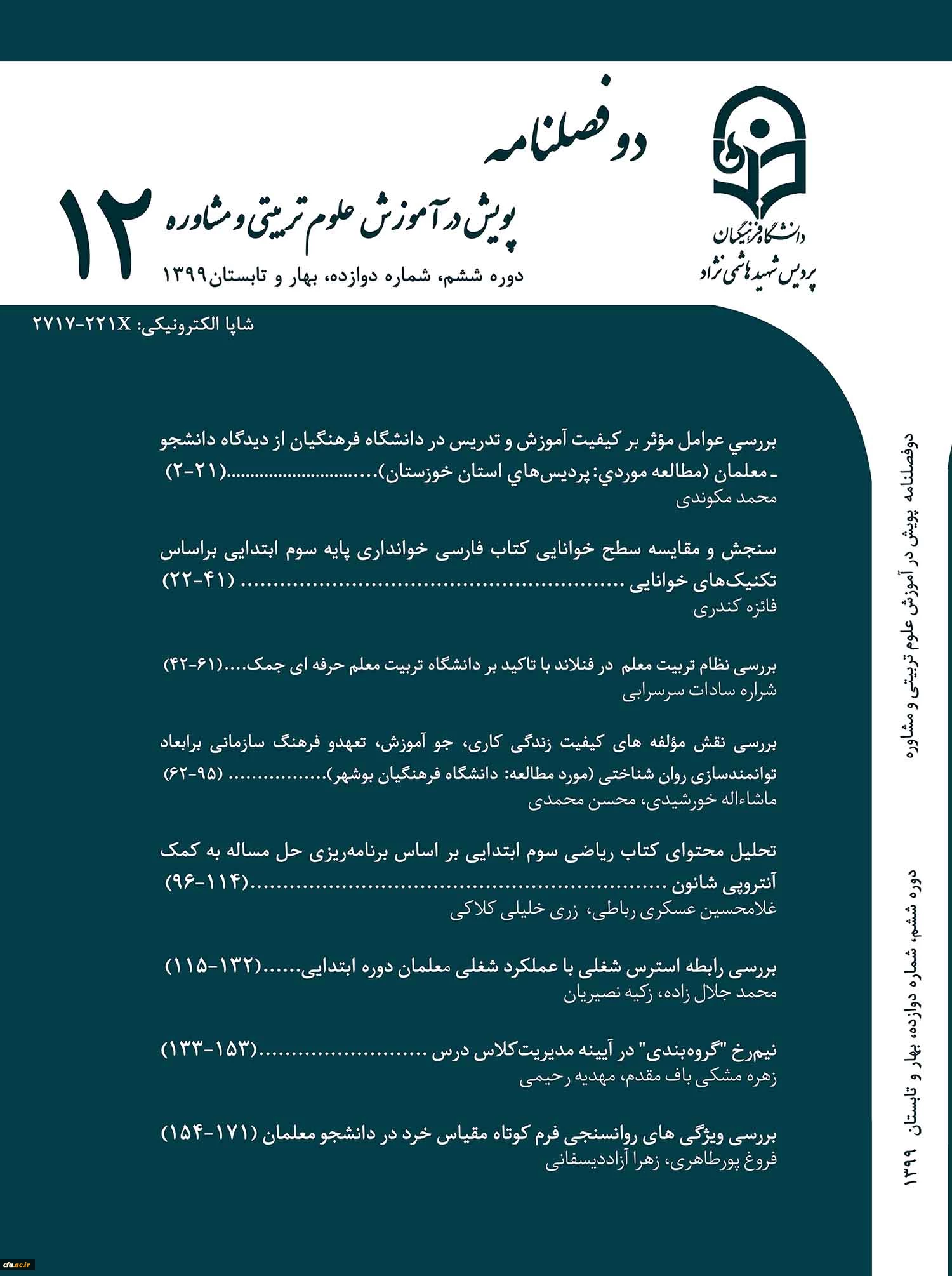 انتشار دوازدهمین شماره (بهار و تابستان ۹۹) از فصلنامه علمی-تخصصی «پویش در آموزش علوم تربیتی و مشاوره» 3
