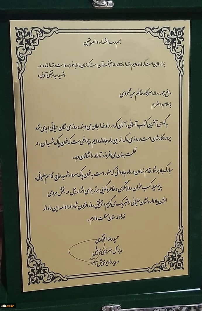 کسب «نشان سردار سلیمانی» توسط یکی از همکاران دانشگاه فرهنگیان در جشنواره نشان سلیمان 6