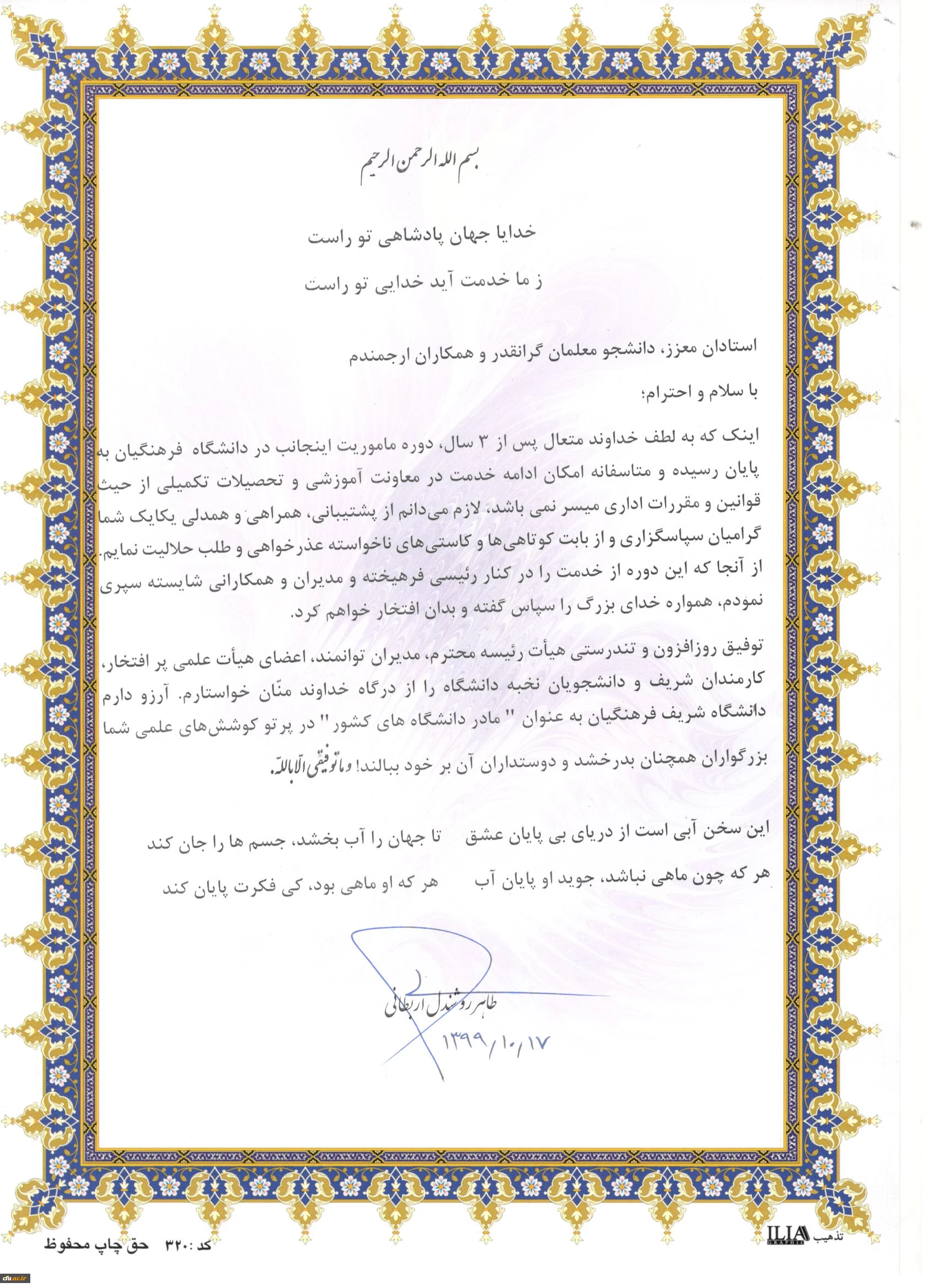پیام خداحافظی جناب اقای دکتر روشندل 2