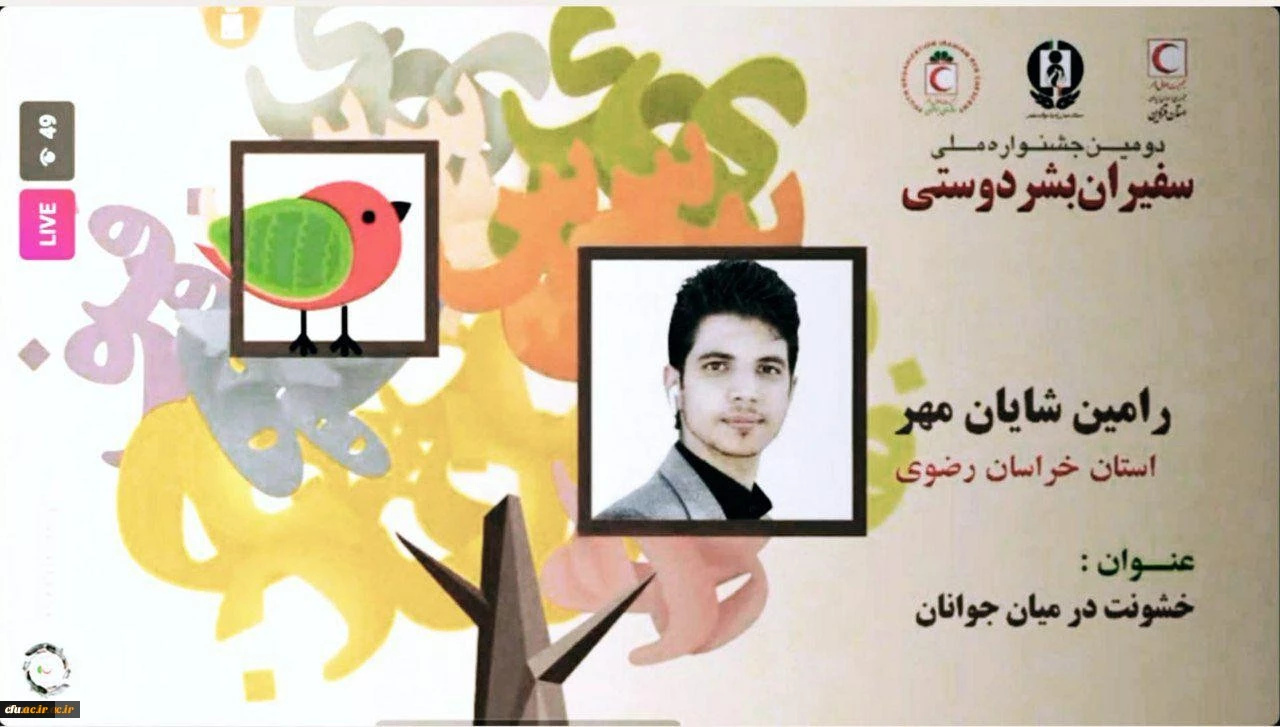 افتخار آفرینی دبیر کانون هلال احمر دانشجویی واحد شهید رجایی تربت حیدریه در جشنواره فن بیان و سخنوری هلال احمر کشور 2