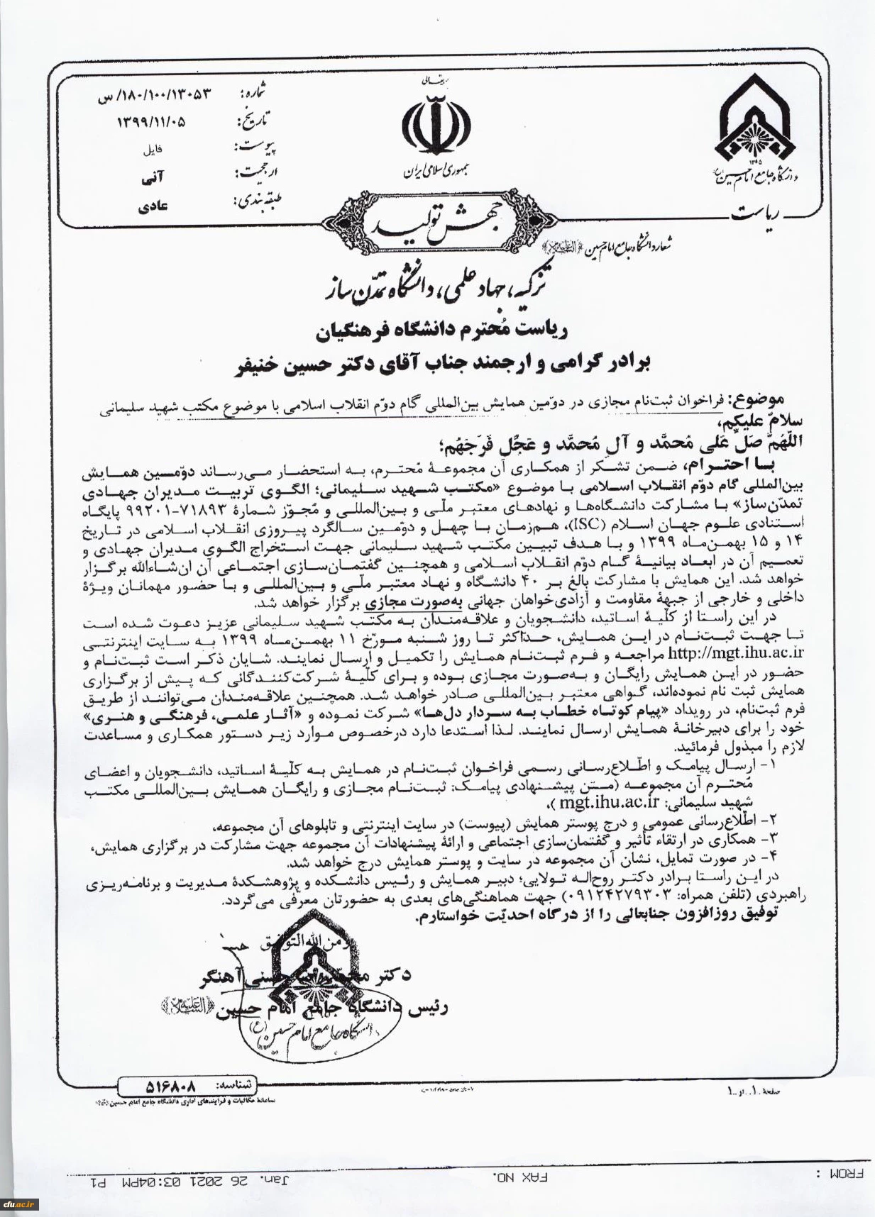 فراخوان ثبت نام مجازی در دومین همایش بین المللی گام دوم انقلاب اسلامی با موضوع مکتب شهید سلیمانی 2