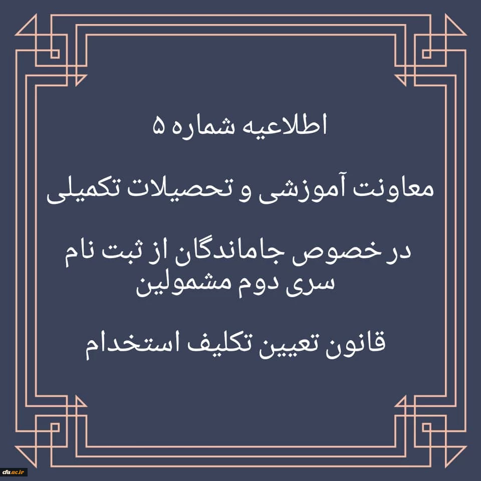 اطلاعیه شماره 5 در خصوص جاماندگان از ثبت نام سری دوم مشمولین قانون تعیین تکلیف استخدام 2