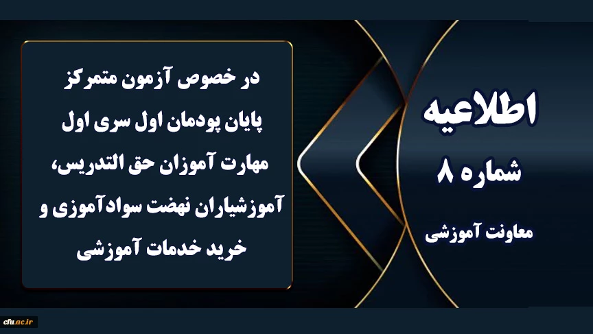 اطلاعیه شماره 8 معاونت آموزشی (مدیریت بهسازی منابع انسانی) مربوط به آزمون متمرکز پایان پودمان اول سری اول مهارت آموزان  2