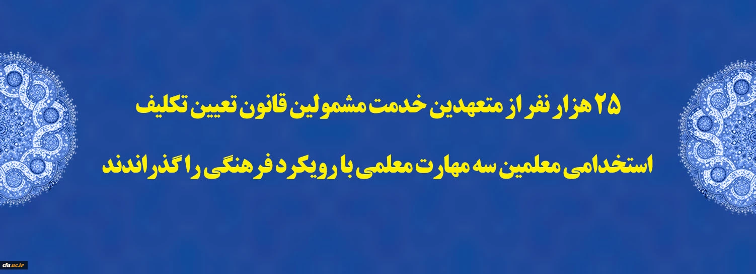 25 هزار نفر از متعهدین خدمت مشمولین قانون تعیین تکلیف استخدامی معلمین سه مهارت معلمی با رویکرد فرهنگی را گذراندند 2