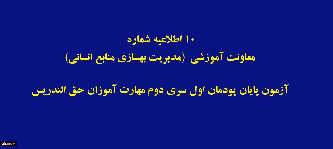 اطلاعیه شماره 10 معاونت آموزشی  (مدیریت بهسازی منابع انسانی) آزمون پایان پودمان اول سری دوم مهارت آموزان حق التدریس 2