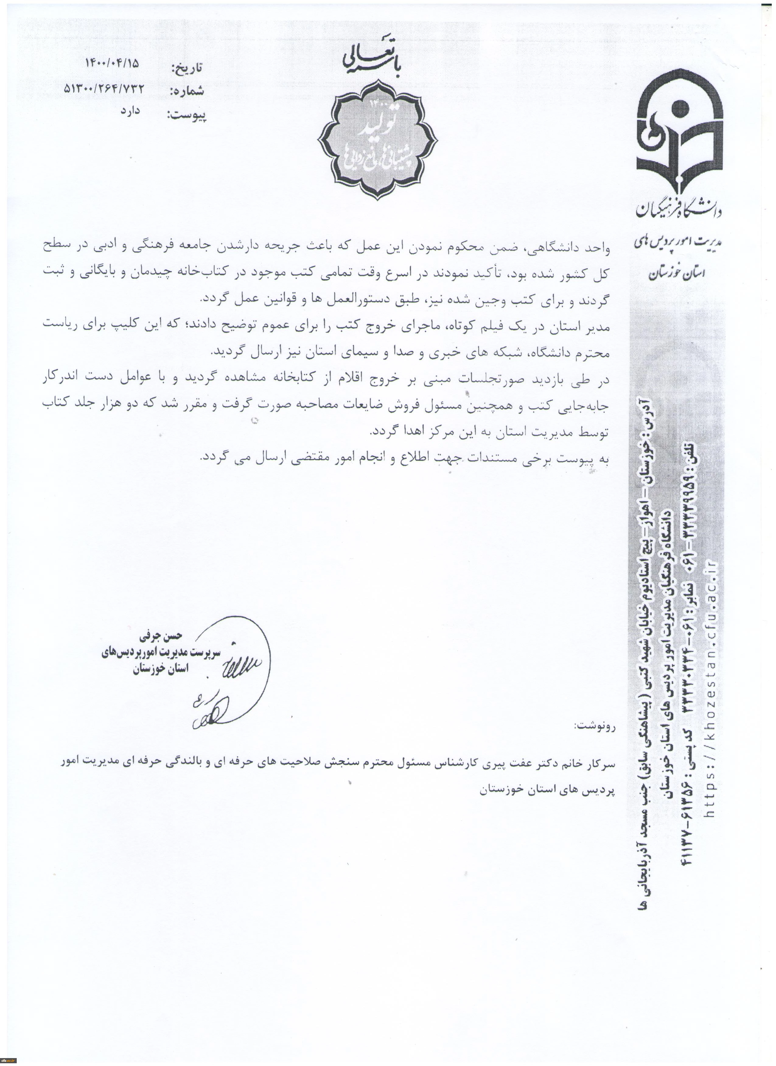شرح ماوقع علت خروج برخی کتب از کتابخانه واحد دانشگاهی امام جعفر صادق (ع) بهبهان 2