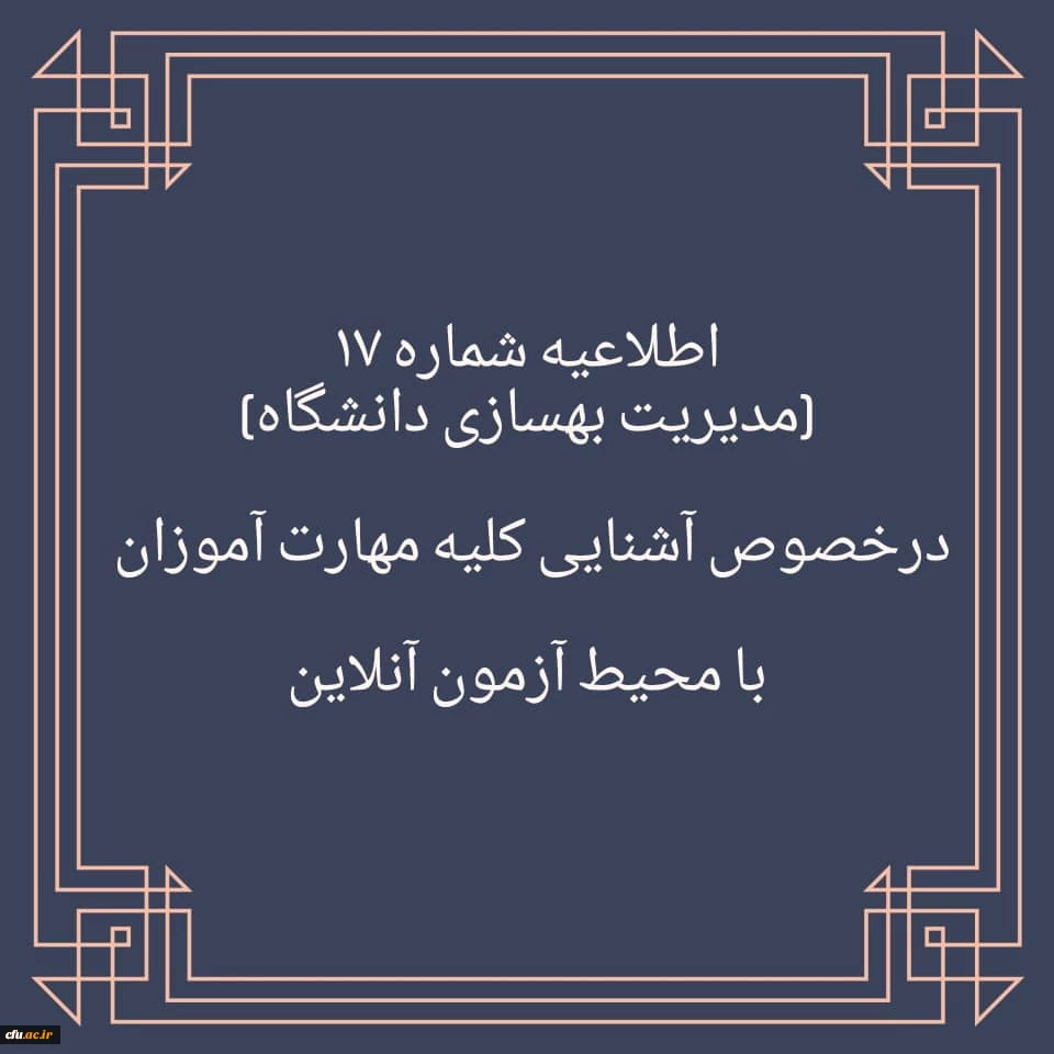 اطلاعیه شماره 17 در خصوص آشنایی مهارت آموزان با محیط آزمون (مدیریت بهسازی منابع انسانی) 2