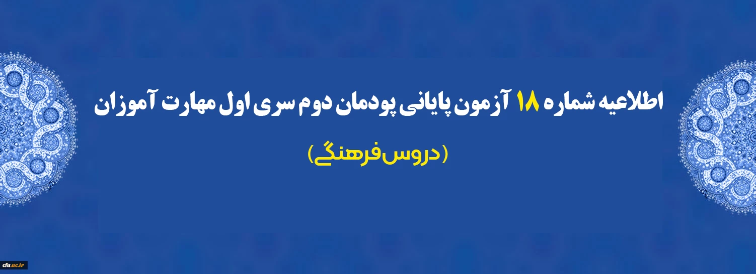 اطلاعیه شماره 18 آزمون پایانی پودمان دوم سری اول مهارت آموزان (دروس فرهنگی) 2