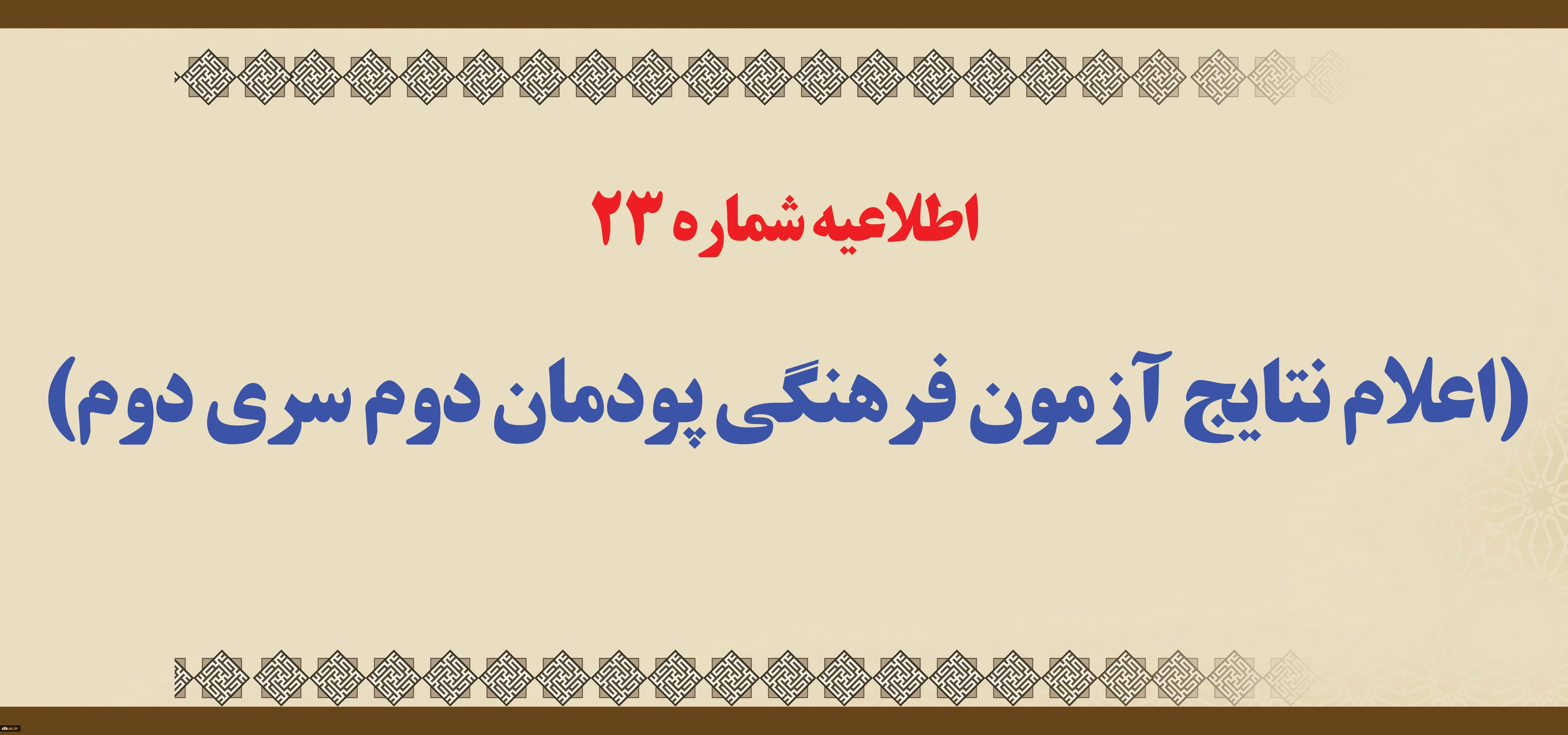 اطلاعیه شماره 23 (اعلام نتایج آزمون فرهنگی پودمان دوم سری دوم) 2