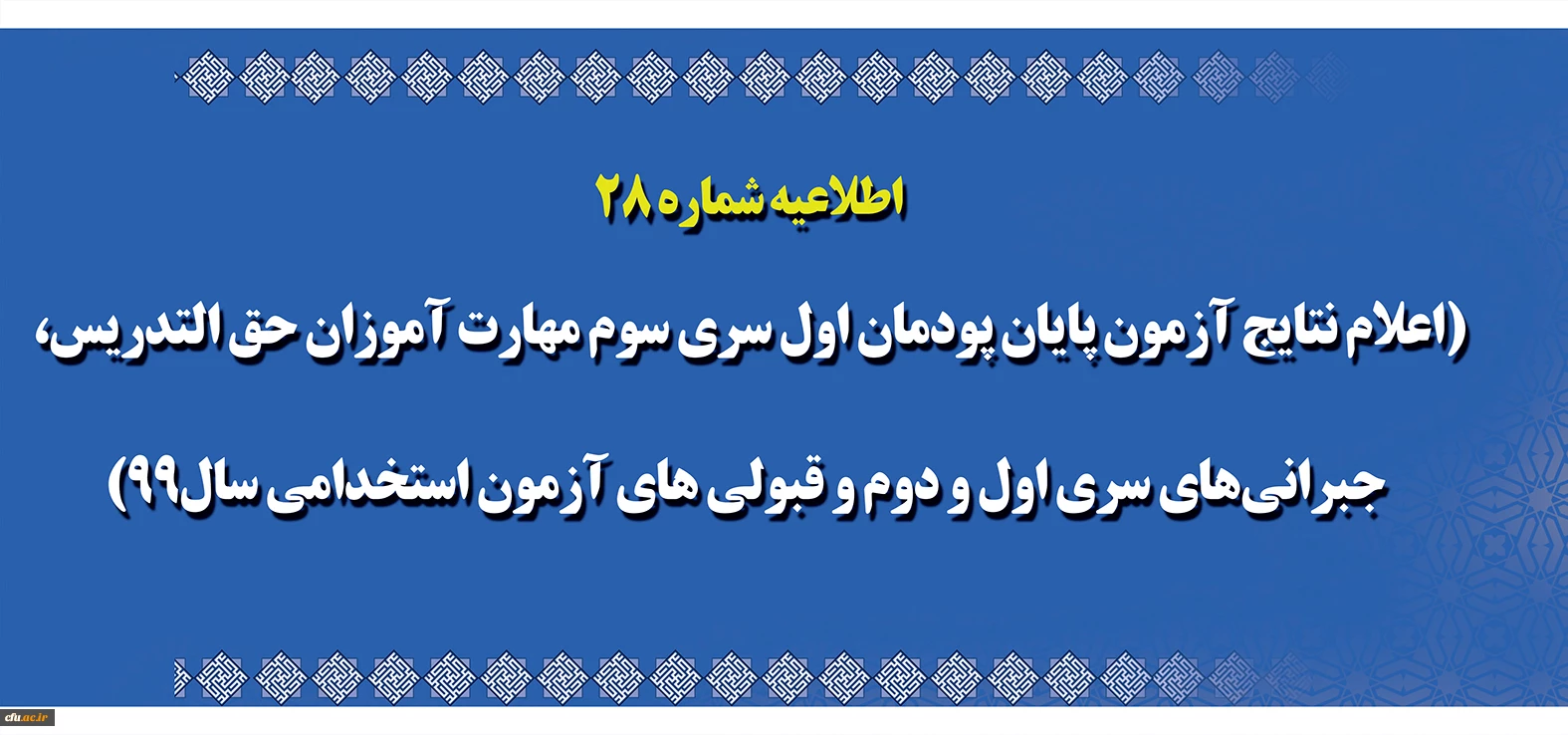 اطلاعیه شماره 28 (اعلام نتایج آزمون پایان پودمان اول سری سوم مهارت آموزان حق التدریس، جبرا نی های سری اول و دوم و قبولی های آزمون استخدامی سال99) 2