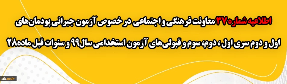 اطلاعیه شماره 37 معاونت فرهنگی و اجتماعی در خصوص آزمون جبرانی پودمان های اول و دوم سری اول ، دوم، سوم و قبولی های آزمون استخدامی سال99 و سنوات قبل ماده28 2