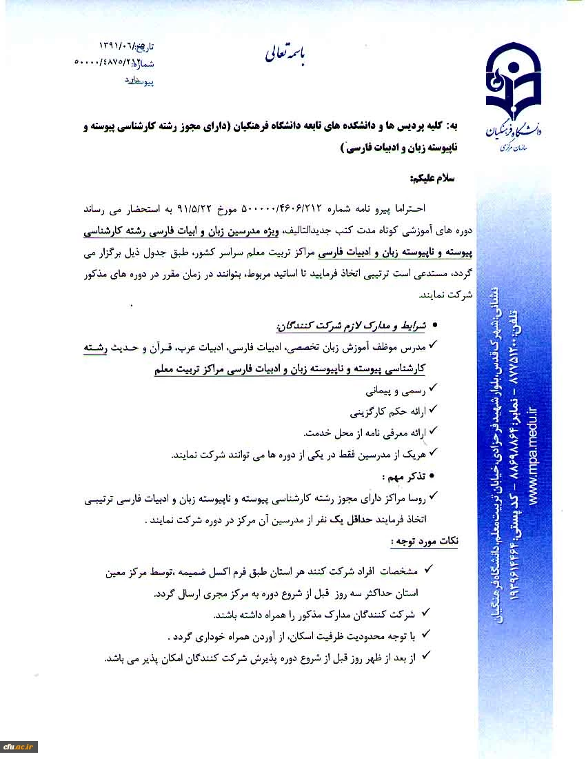 دوره آموزشی کوتاه مدت ویژه مدرسین زبان و ادبیات .../4875