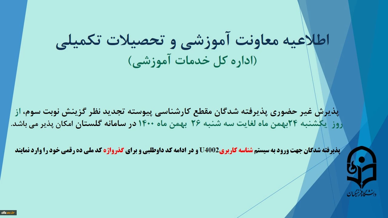اطلاعیه پذیرش غیر حضوری پذیرفته شدگان مقطع کارشناسی پیوسته تجدید نظر گزینش نوبت سوم سال 1400 3