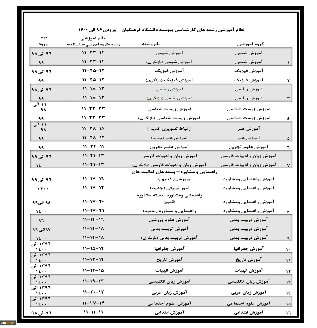 نظام های آموزشی رشته های تحصیلی در سامانه گلستان