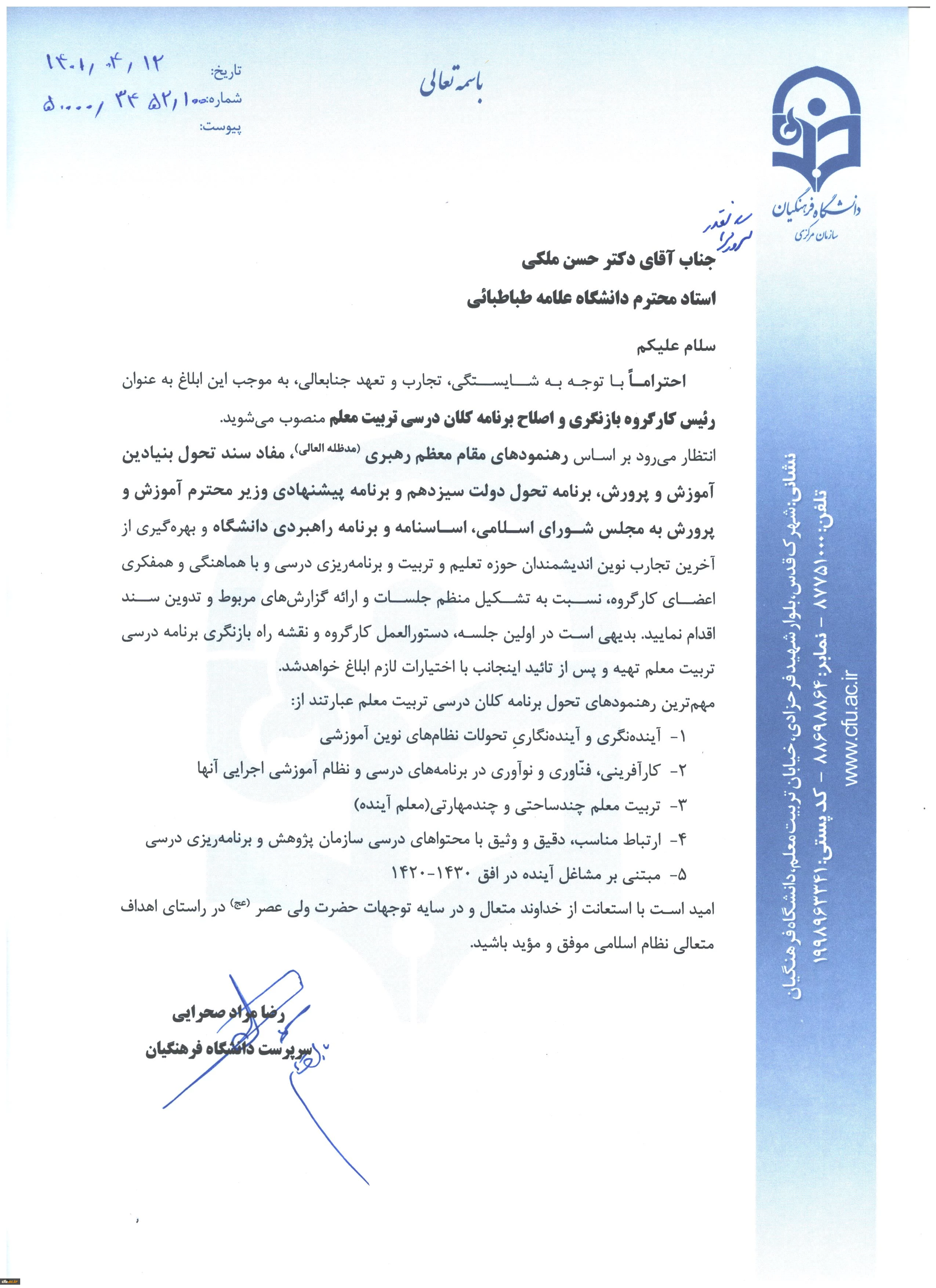 رئیس کارگروه بازنگری و اصلاح برنامه کلان درسی تربیت معلم منصوب شد 3
