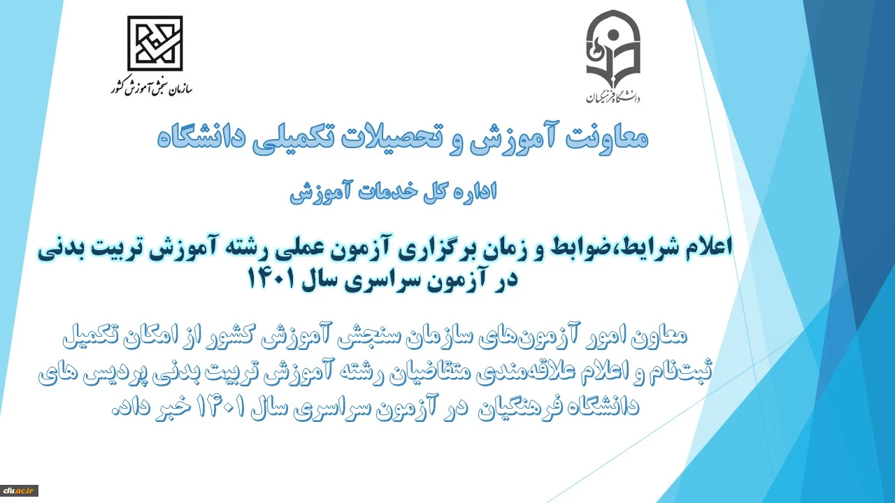 اعلام شرایط و ضوابط برای برگزاری آزمون عملی آموزش تربیت بدنی در سال 1401 3