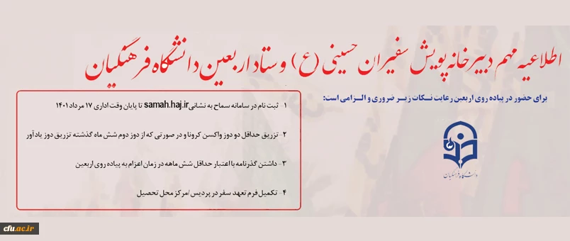 اطلاعیه شماره 1 دبیرخانه سومین پویش سفیران حسینی (ع) و ستاد اربعین دانشگاه فرهنگیان 2
