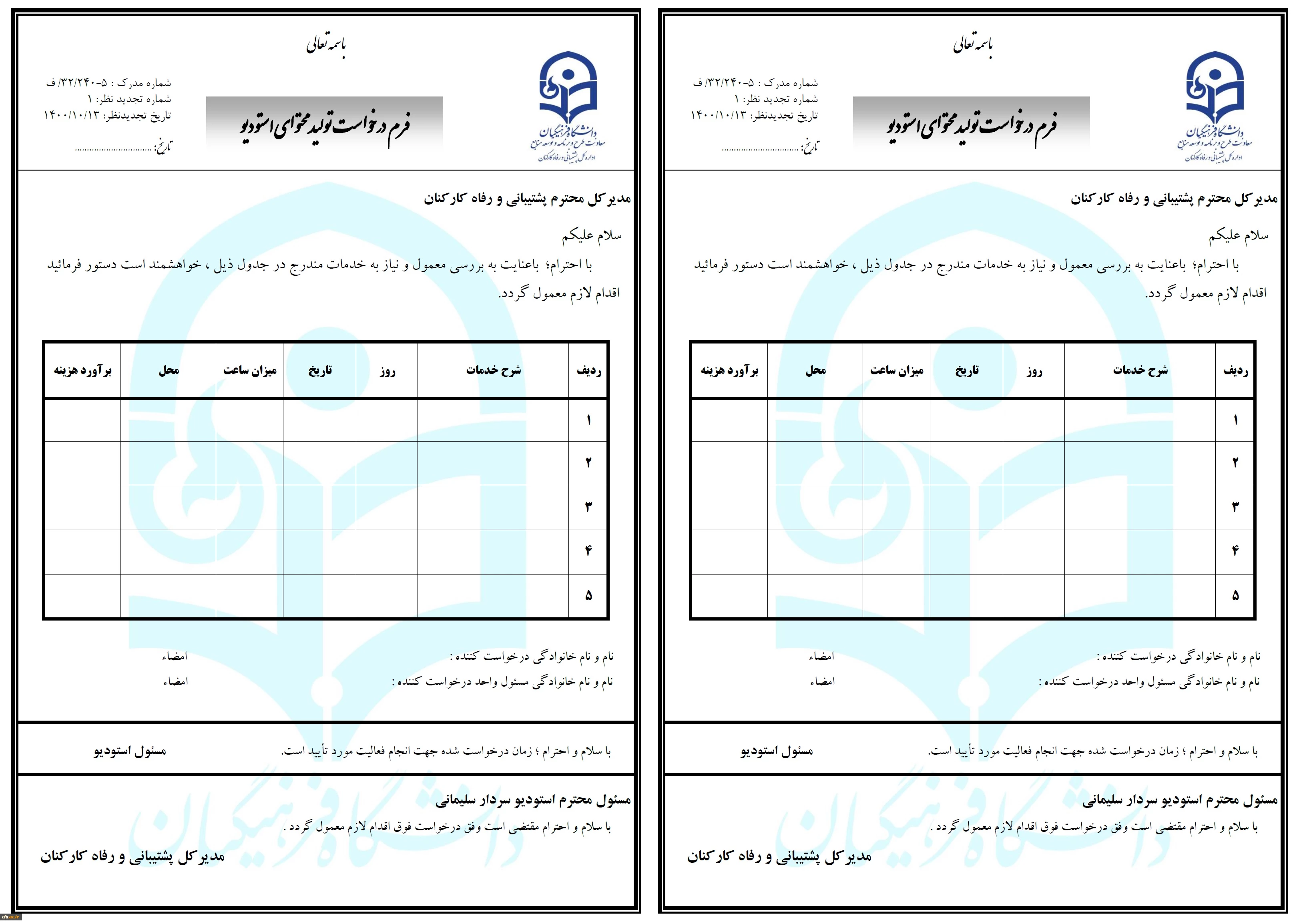 فرم درخواست تولید محتوای استودیو