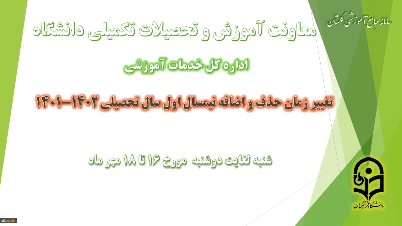تغییر بازه زمانی حذف و اضافه در نیسمال اول سال تحصیلی 1402-1401 3