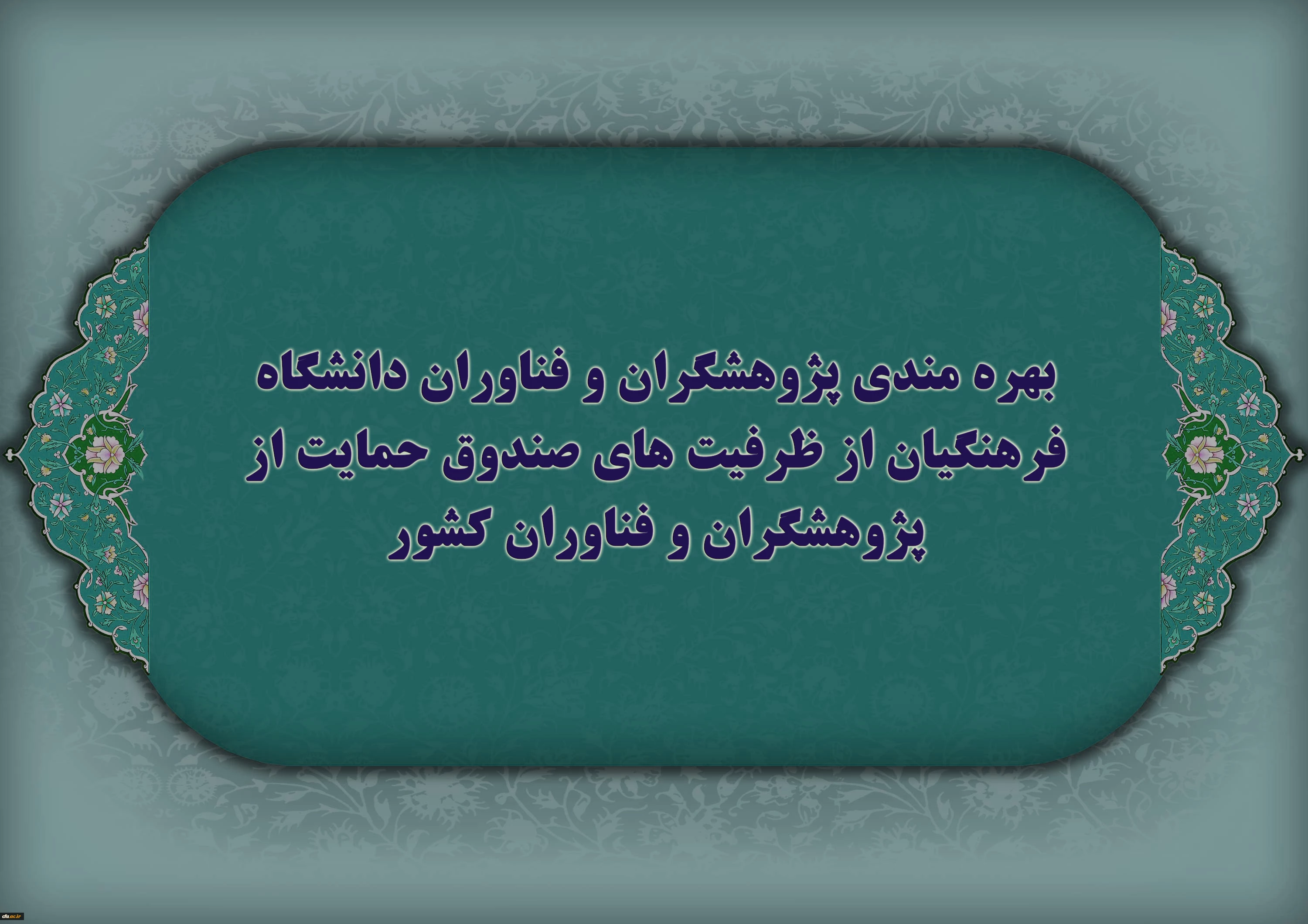 بهره مندی پژوهشگران و فناوران دانشگاه فرهنگیان از ظرفیت های صندوق حمایت از پژوهشگران و فناوران کشور 2