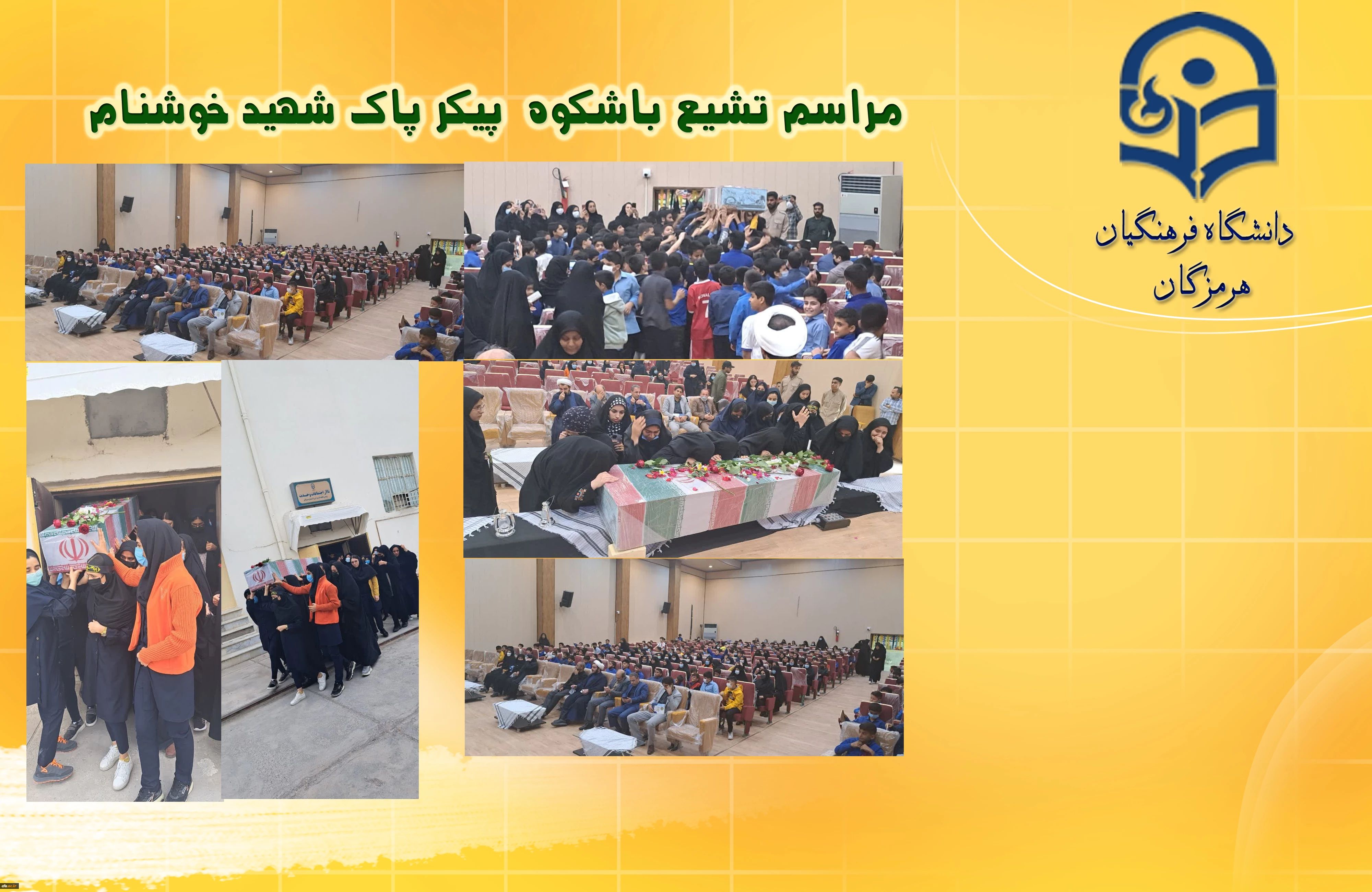 مراسم تشیع با شکوه پیکر پاک شهید خوشنام در سالن پردیس فاطمه الزهرا(س) دانشگاه فرهنگیان هرمزگان 2