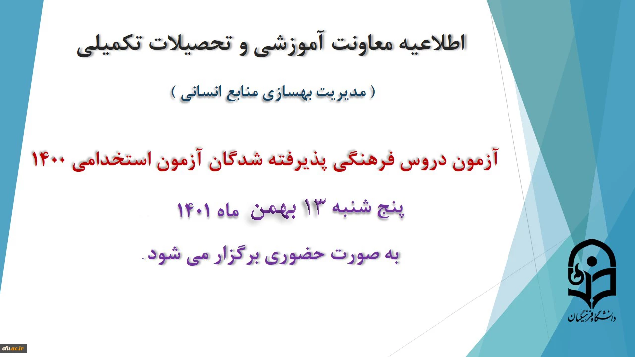 برگزاری آزمون دروس فرهنگی پذیرفته شدگان آزمون استخدامی سال 1400 2