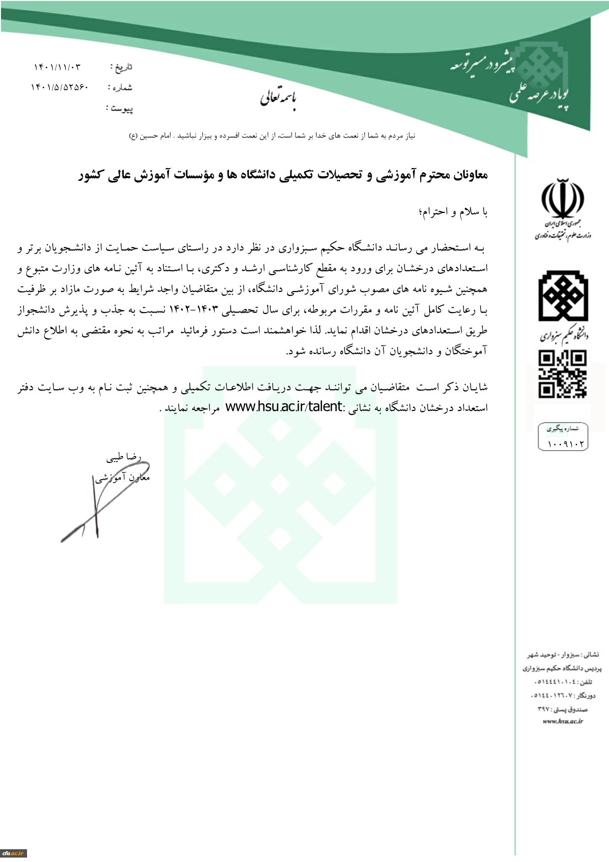 فراخوان پذیرش دانشگاه های استعداد درخشان 8